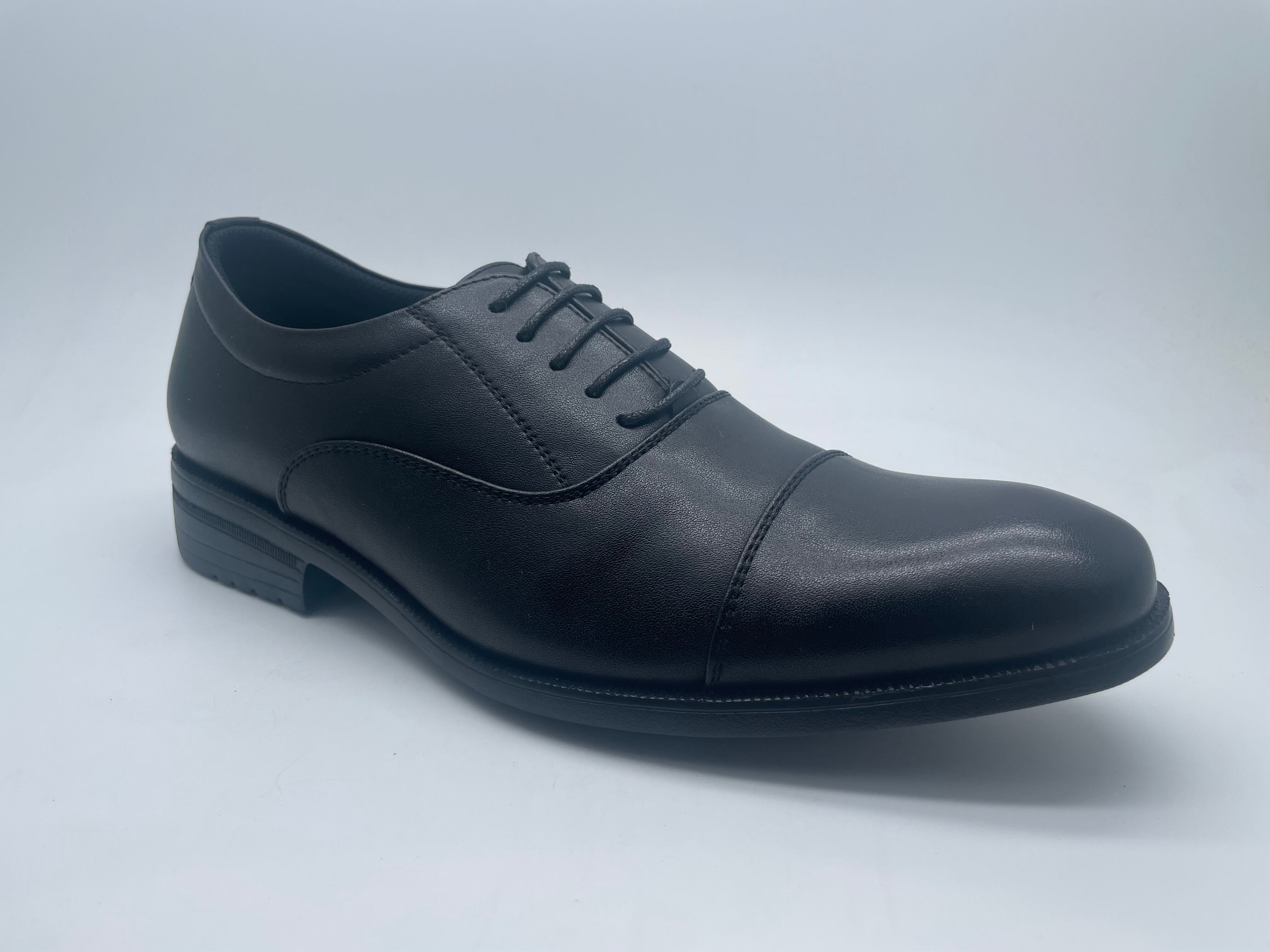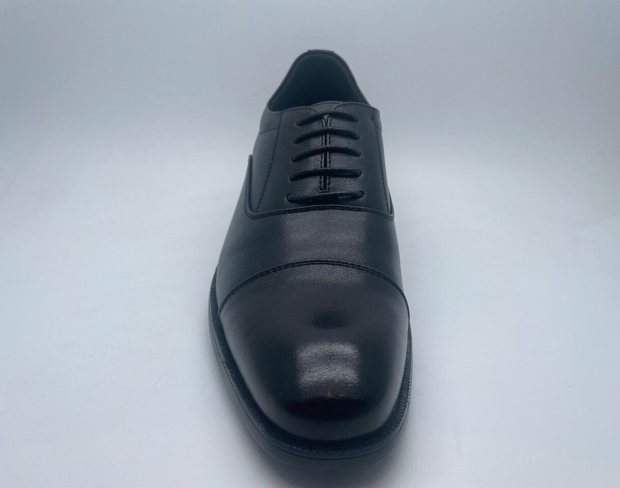 内羽根ストレートチップが品のある装いを演出し、ブラックカラーがビジネスシーンにもマッチします。